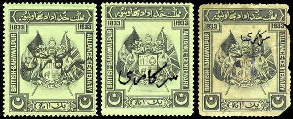 Bahawalpur 1933 rejected large overprint on Centenary stamp