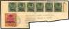 1947 local rubber handstamp in black on KG V Service 9p marginal strip of six, and 2r single, on piece cut from envelope to Baghdad-ul-Jadid. Sadiq-Garh CDSs of 11 SP. A fine piece; Isani & Hussain record the 9p only with red handstamp, and the 2r only in green