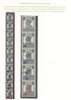 1947 India 3p with trial overprints vertical strip of ten, unmounted o.g. Top six stamps without overprints; stamps 7-9 with overprint in black (not red, as issued); stamp 10 doubly overprinted in red and gold. Stamp three with stain, stamp 9 with the overprint smudged (perhaps attesting to the trial nature of the overprints), still a fine item with eight such strips produced. SG 1 trial