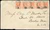 1907 Strip of four and single "1D" on 5/- Salmon and green tied to a commercial cover to the United States all neatly tied by Georgetown cds (9 DE 07), with the 5d franking paying double the foreign letter rate of 2½ d. Kingston, Jamaica transit on the reverse, some edge faults and a tear at bottom right, damage on reverse due to mounting, faults on the reverse, none of which affect the stamps, BPA cert (1994), ex Burrus, Maisel, an attractive and rare cover