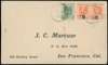 1907 pre-printed envelope with San Francisco address bearing a pair of "1D" on 5/- green and salmon provisionals and a single ½d KEVII green, both tied by Georgetown cds (10 DE 1907), Kingston, Jamaica transit cds (19 DE 1907) on reverse. Central vertical crease hardly detracts and does not affect the stamps. Ex Lee, Cooley, Byl, rare commercial usage