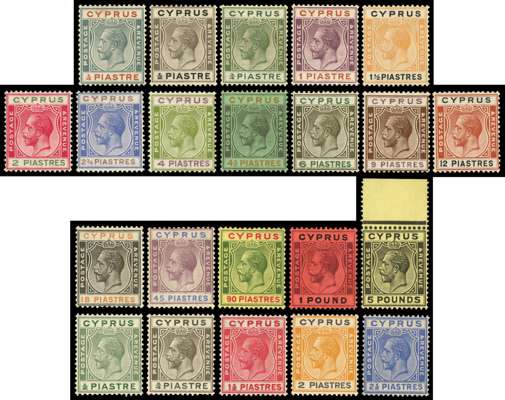 Cyprus 1912-28 mint collection including £5 black/yellow S.G. 117a