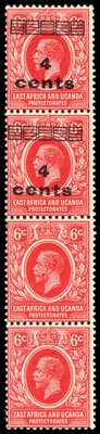 KUT 1919 4c on 5c vertical strip surcharge omitted