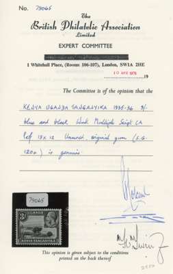 1935-37 3s blue and black, perf 13x12, large part o.g., very scarce. BPA cert (1976). SG 120a, £2500