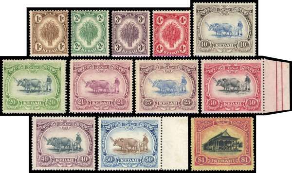 1921-32 set of 15 to $5, Script wmk, large part o.g. to o.g., the $1 with oxidised colour otherwise a fine set, the 25c, 40c, 50c, $2 and $5 all with the scarcer wmk Crown to left of CA. SG 26/40w, cat £694