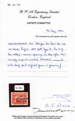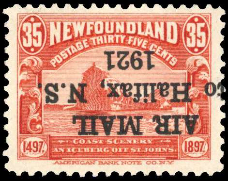 1921 Air 35c red, type 72 opt with 1½mm space and No stop after ‘1921’, error OVERPRINT INVERTED, fresh large part o.g. with Sanabria handstamp on reverse, a very fine example of this major rarity of which only eight examples existed. BPA cert (2004). SG 148k, cat £15,000