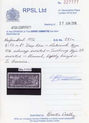 Newfoundland 1932 Air $1.50 on $1 Dornier surcharge inverted