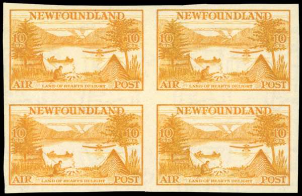 Newfoundland 1933 Air 10c imperf block of 4 variety Watermark top of shield to left