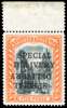 Special Delivery. 1916 5d black and orange, wmk Crown CC, type S1 ‘SPECIAL DELIVERY’ opt, upper marginal, error OPT DOUBLE, ONE INVERTED, brilliant unmounted o.g. and very fine. BPA cert (1998). SG S1b, cat £1100+