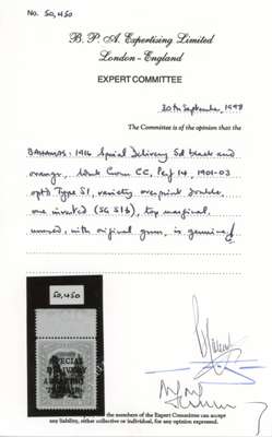 Bahamas 1916 Special Delivery 5d error overprint double one inverted