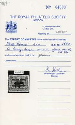 1922 Malaya-Borneo Exhibition 5c orange-brown, error OVERPRINT DOUBLE WITH STOP AFTER EXHIBITION, fresh unmounted o.g., one of the great rarities of the issue with probably only one or two examples possible. RPS cert (1967). SG 258d, cat £8500