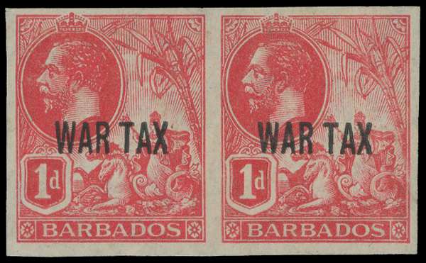 Barbados 1917-18 War Tax 1d imperf plate proof