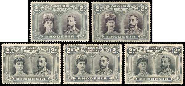 Rhodesia 1910-13 2d perf 14 group