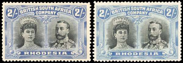1910-13 2s perf 14, two examples respectively in black and ultramarine, and black and dull blue, part o.g., both with slightly disturbed gum still fine fresh appearance, the latter with BPA cert (2012). SG 153/154, cat £1320