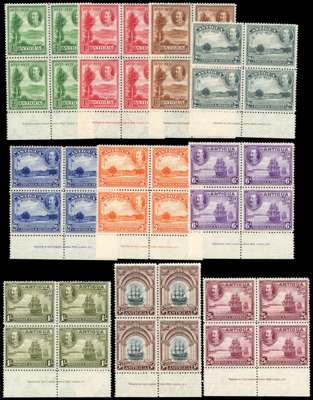 Antigua 1932 Tercentenary set of 10 imprint blocks