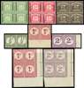 Postage Due. Small selection comprising 1926 set in blocks of 4, 1932-58 ordinary paper set in horizontal pairs (the 2d with Large ‘d’ variety) and 1d and 2d values in matching lower right corner blocks of 4, large part o.g. to o.g. SG D1/D3, D4/D6, D6a, cat £410+