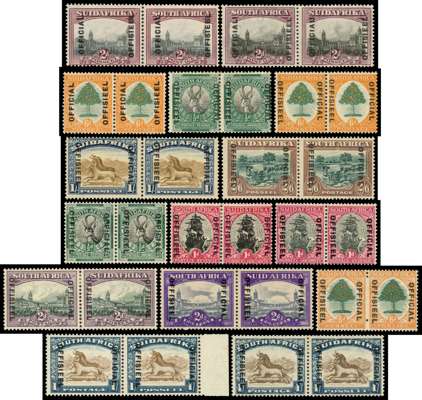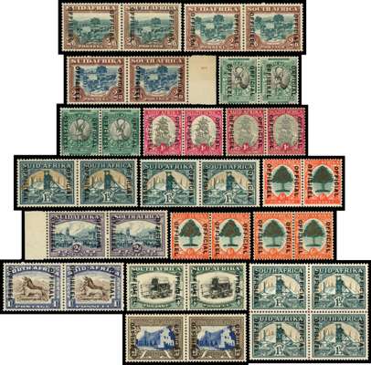 Official. Useful accumulation on stock pages comprising (horizontal pairs unless stated) 1928-30 2d (2 - both sizes of opt) and 6d, 1929-31 ½d, 6d, 1s, and 2s6d, 1930-47 set to 2s6d (both colours) with additional ½d showing damaged ‘O’ in ‘OFFISIEEL’, 1935-49 set to 10s incl shades of 1d, 1½d (pair and block of 4) and 6d, mostly fine large part o.g. to unmounted o.g. SG O5/O6, O7/O11, O12/O19, O20/O27, cat £1500+