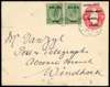 1923 (20 Jun) 1d red p/s envelope, opt ‘SOUTH WEST / AFRICA’, error OVERPRINT DOUBLE, addressed to Windhoek and uprated with 1923 ½d green horizontal pair, tied by modified Outjo cds, minor toning but spectacular and very rare.