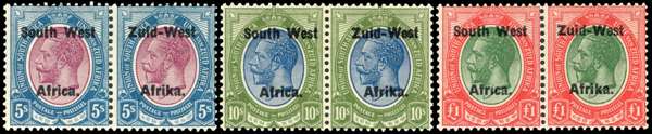 SWA South West Africa 1923 5s, 10s, £1, setting II set of 3 superb mint S.G. 13/15