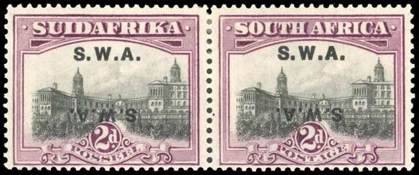South West Africa 1927-30 2d perf 14x13½ opt double one inverted