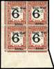 Postage Due. 1923 6d black and red-brown, type 1/2 opts on Transvaal, lower left corner block of 4, the lower right stamp variety ‘Wes’ for ‘West’ (R10/2), unmounted o.g., minor gum creasing but a rarity with less than 70 possible and especially desirable in this positional form. SG D2a, cat £500+