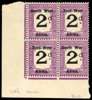 Postage Due. 1923 2d black and violet, type 1/2 opts on South Africa, lower left corner block of 4, the lower right stamp variety ‘Wes’ for ‘West’ (R10/2), large part o.g., less than 200 possible and very scarce in this positional form. SG D3a, cat £400+