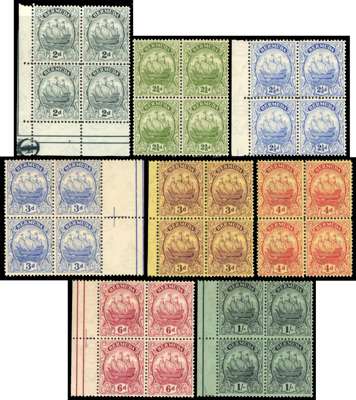 1910-34 ‘Caravel’ collection on stock pages, comprising 1910-25 set to 1s incl most Part 1 listed shades and a few blocks of 4 to 4d, 1918-20 War Tax 1d x3, 1922-34 set to 1s incl Part 1 listed shades (apparently complete but unchecked) plus set of 12 in blocks of 4, cond varies but generally fine large part o.g. to o.g. SG44/51a, 56/58, 77/87a, cat £814+