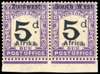 Postage Due. 1923-26 5d black and violet, type 3/4 opt on Transvaal, setting IV, horizontal pair from foot of sheet, unmounted o.g., lightly toned gum still fine appearance and rare. SG D17a, cat £750