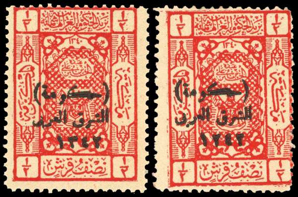 Transjordan 1924 official ½p x2 incl variety Arabic 1242