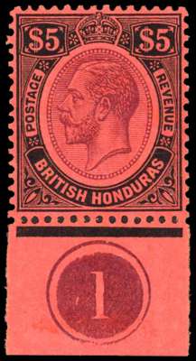 British Honduras 1922-33 $5 plate number single