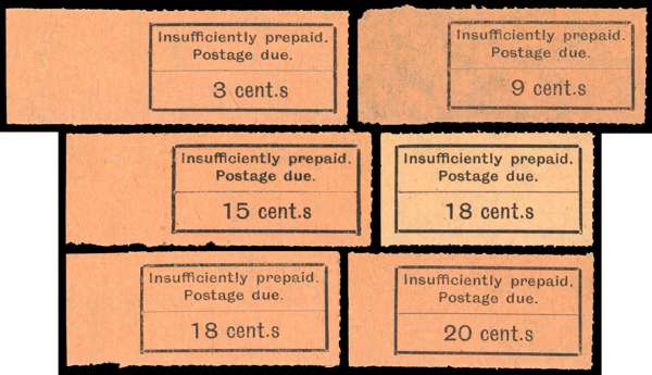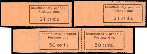 Postage Due. 1926-30 3c to 50c, 9 values comprising 3c, 9c, 15c, 18c (both), 20c, 21c, 31c, and 50c (horizontal pair), each showing ‘Cent.s’, fresh unused, a fine group. SG D3a/D16a btwn, cat £678