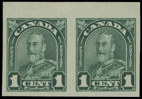 1930-31 1c green, die II, horizontal pair from top of sheet, IMPERFORATE, large part o.g., slightly heavy hinging but very scarce with only 50 pairs possible. Sismondo cert (2012). SG 289da, cat £2000