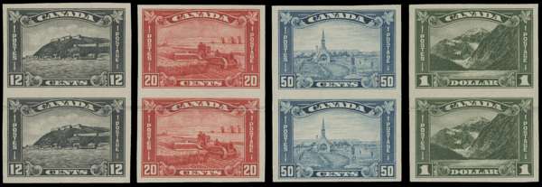 Canada 1930-31 12c to $1 vertical pairs imperforate