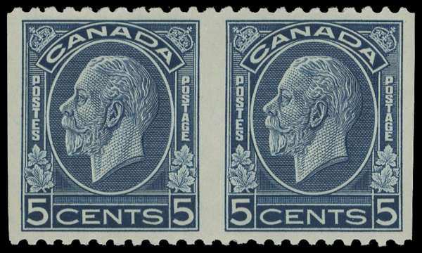 Canada 1932-33 5c blue horizontal pair imperforate vertically
