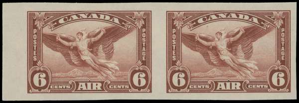 1935 Air 6c red-brown, IMPERFORATE horizontal pair, fresh o.g., scarce, only 150 pairs originally existed. SG 355 var, cat £750