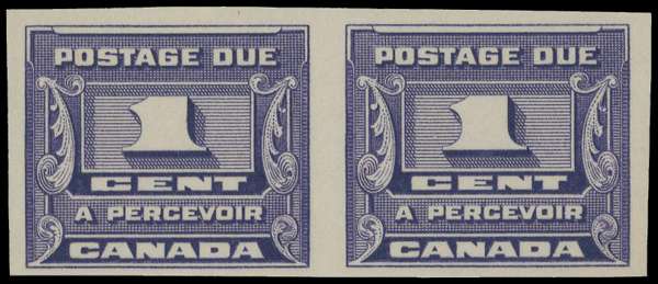 Postage Due. 1933-34 1c violet, IMPERFORATE horizontal pair, fresh large part o.g., scarce, only 100 pairs originally existed. SG D14 var, cat £400