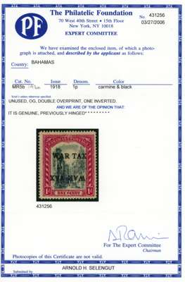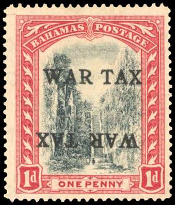Bahamas 1918 War Tax 1d error overprint double one inverted