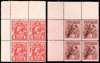1913-14 engraved KGV 1d red and 6d claret 'Kookaburra', BLOCKS OF FOUR S.G. 17, 19 cat £320++