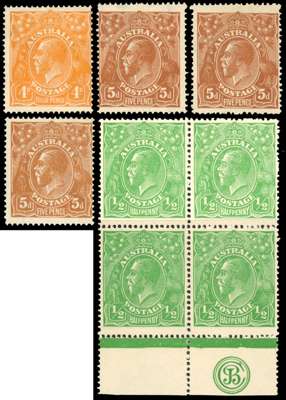 Australia SG 20/23ba 1914-20 semi-specialised range mint