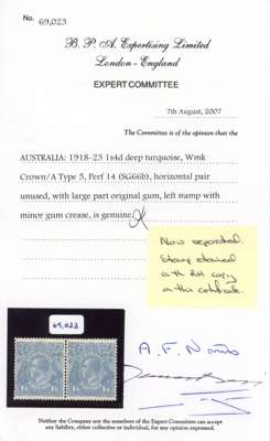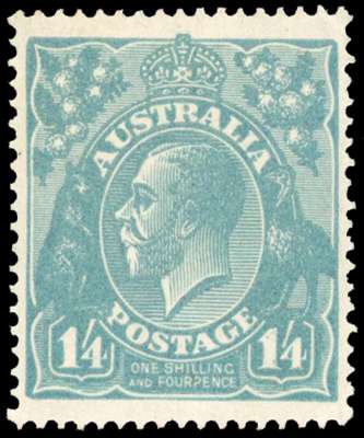 Australia 1918-23 Single wmk 1s4d. deep turquoise Large part o.g. S.G. 66b, £3,500