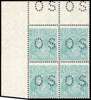 Australia Official. 1926-30 1s 4d turquoise unmounted corner block S.G. O111 cat £2,400++