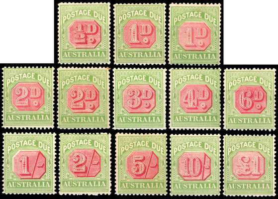 Australia 1909-10 POSTAGE DUE set complete to £1 large part o.g. D63/73 D64b, D65a cat £1,000+