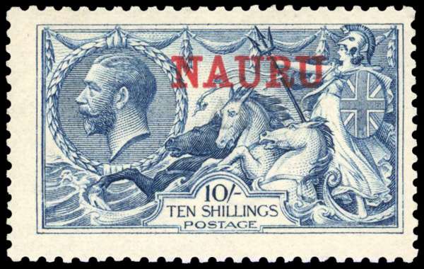 Nauru SG 23a 1916-23 10s pale blue DLR overprint treble mint