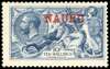 1916-23 10s pale blue, DLR printing, showing TREBLE OPT (one red, one black, one albino), very fine o.g. The ‘black’ opt (with almost complete ‘A’ and traces of ink in ‘URU’) is directly below the red, while the albino impression is placed still lower and slightly to the right. Very rare, with only five examples recorded by Buckingham. A remarkable variety, with the ‘black’ opt resulting from the use of uncleaned type after overprinting of a 2s6d or 5s sheet. SG 23a, cat £3750