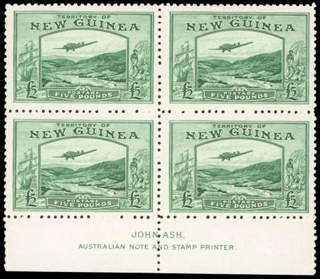 1935 Air £5 emerald-green, lower marginal IMPRINT BLOCK OF 4, large part o.g. with the lower pair remaining unmounted, minor gum bends but a spectacular and very rare positional piece. SG 205, cat £3000+