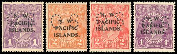 Official. 1919-23 1d violet, 2d orange, 2d rose-scarlet, 4d violet, perf ‘OS’, wmk 5 of Australia, o.g., odd blemishes and the first three faintly toned, but a difficult group to assemble. SG O17/O20, cat £1175