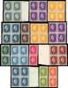 1915-30 1½d to 1s, the ‘set’ of 14 ‘two-perf’ pairs as either vertical pairs (3d chocolate, 4½d, 6d, 9d, 1s) or blocks of 4, the 4½d and 8d with minor gum toning otherwise fresh and fine, large part o.g. SG 416b/430d, cat £1676