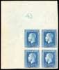 1915-30 5d light blue, imperforate upper left corner block of 4 with plate number ‘43’, mint unmounted o.g., slight creasing but a spectacular and very rare positional piece. SG 424a, cat £1200++