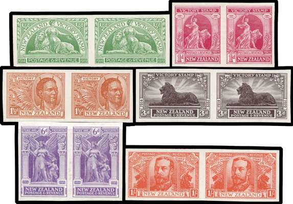 1920 Victory set of 6 to 1s, imperforate plate proofs in issued colours on wmkd gummed paper, unmounted o.g. SG 453/458