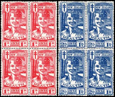 1931 Health ‘Smiling Boy’ pair, blocks of 4, unmounted o.g., attractive multiples. SG 546/547, cat £640+